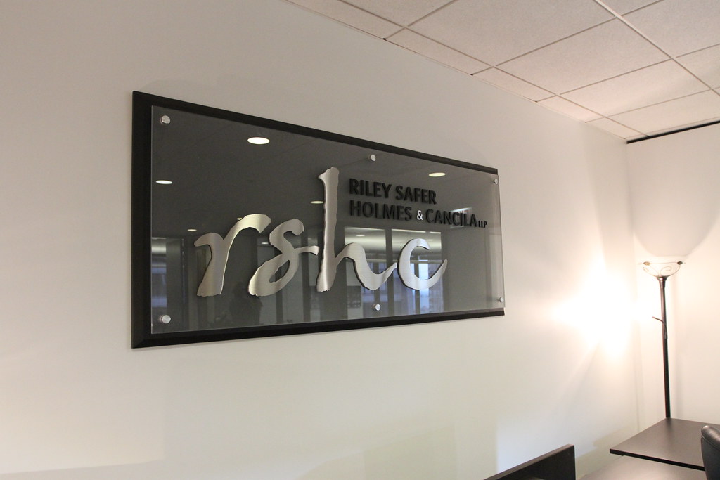Custom laser cut metal sign for Panasonic Factory Solutions Office Lobby in Chicago