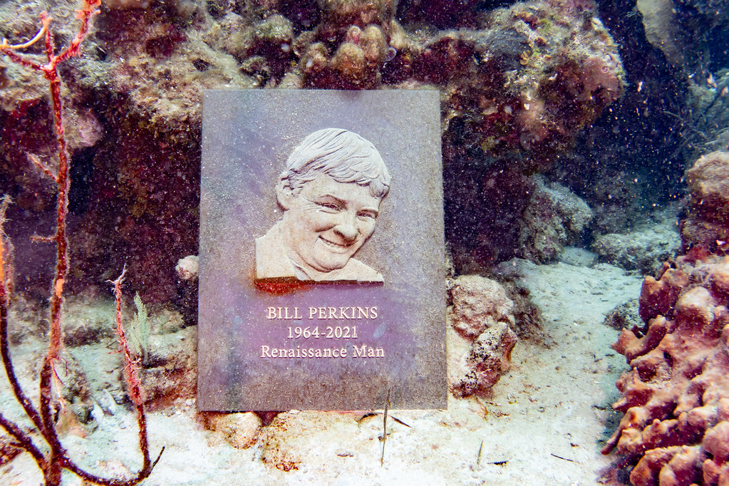 Underwater Bas Relief bronze plaque of Bill Perkins Peace memorial Roatan