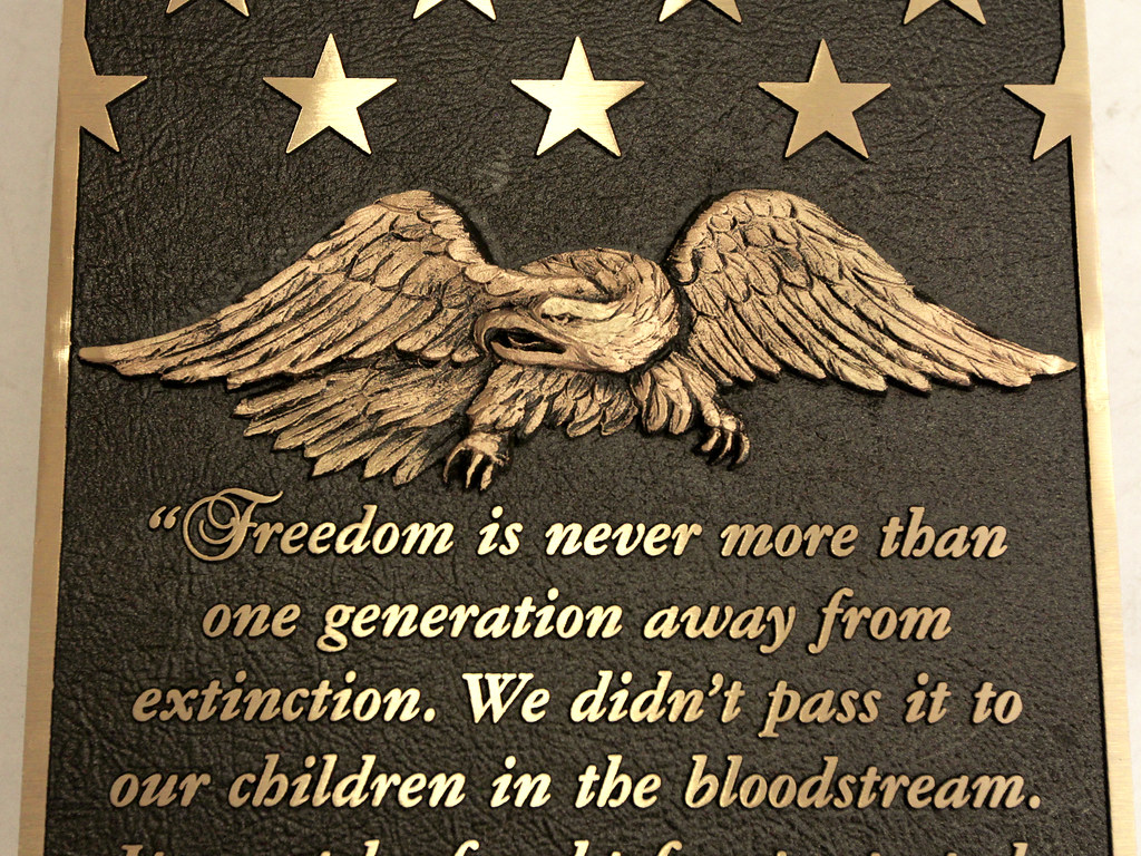 Custom bronze bas relief sculpted eagle for veteran memorial plaque
