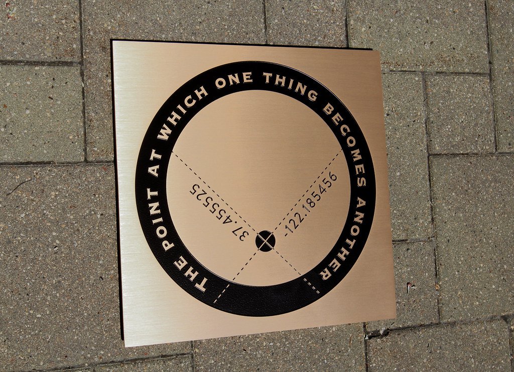 18"w x 18"h Etched bronze plaque with custom line art and text layout