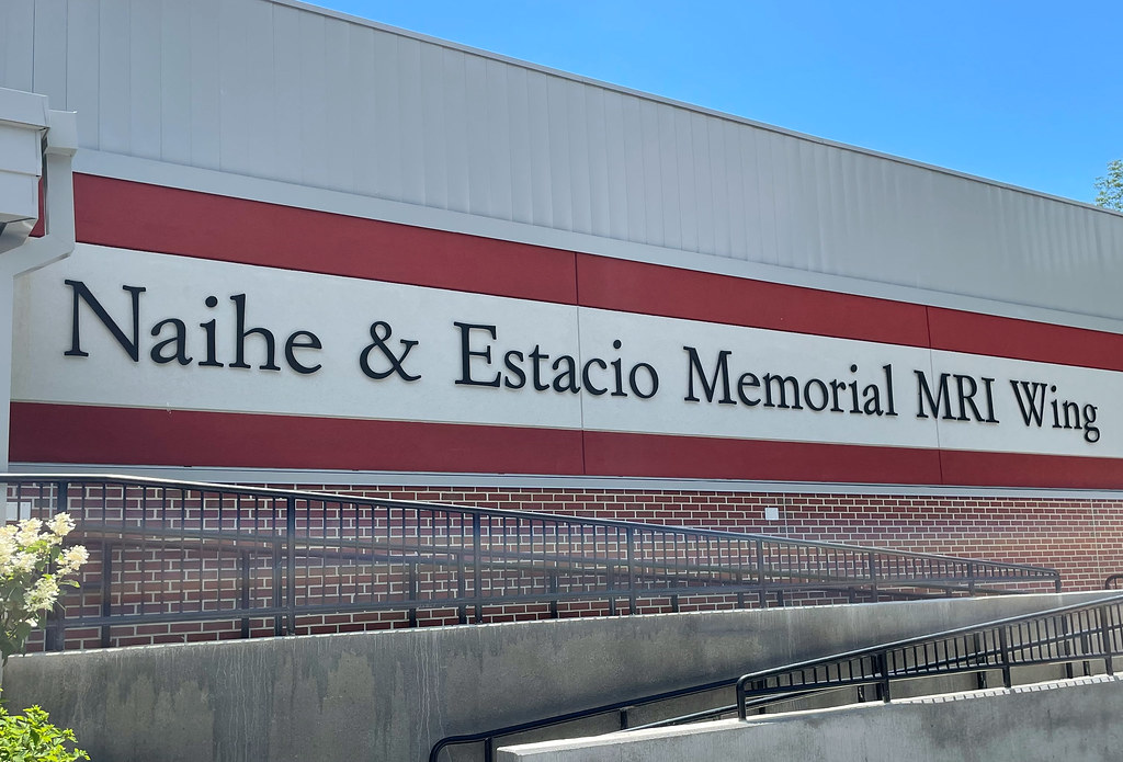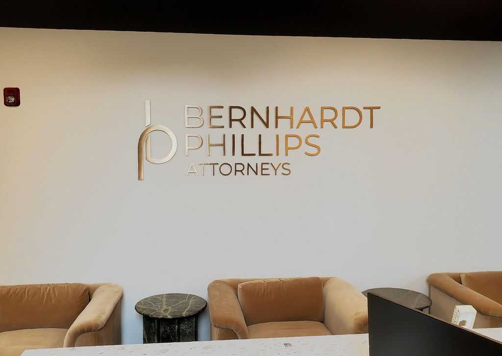 48" x 36" x 1/4" thick Custom Shape and custom painted aluminum panel with 1/4" thick brushed aluminum letters assembled flush to panel face. Includes Blind mounting; studs and 1/4'' spacers