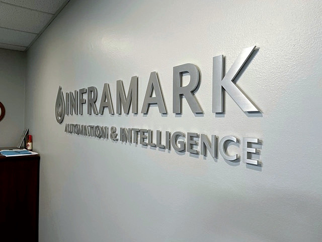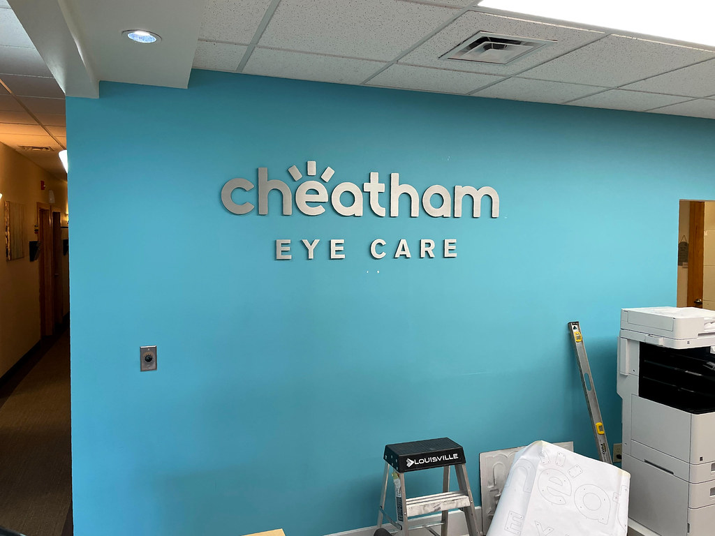 72" wide 1/4" thick solid aluminum brushed finish Letters and custom Logo Includes stud mounts installation template and spacers to "float" the sign