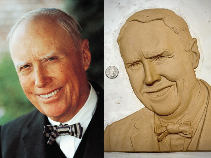 We recommend a minimum plaque size of 16" × 20" for a single portrait to allow for sufficient sculptural detail. Larger plaques such as 18" × 24" or 24" × 36" are excellent for even greater dimensional refinement. The sculpted portrait typically ranges from 8" to 18" tall, but can be larger if needed.