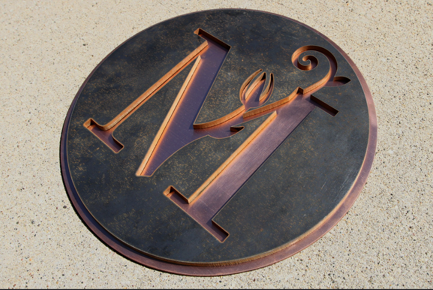 COR-TEN is a weathering steel that forms a protective rust-like patina when exposed to moisture and air. This natural layer prevents further corrosion, making it a durable material for outdoor signage without the need for paint or coating.